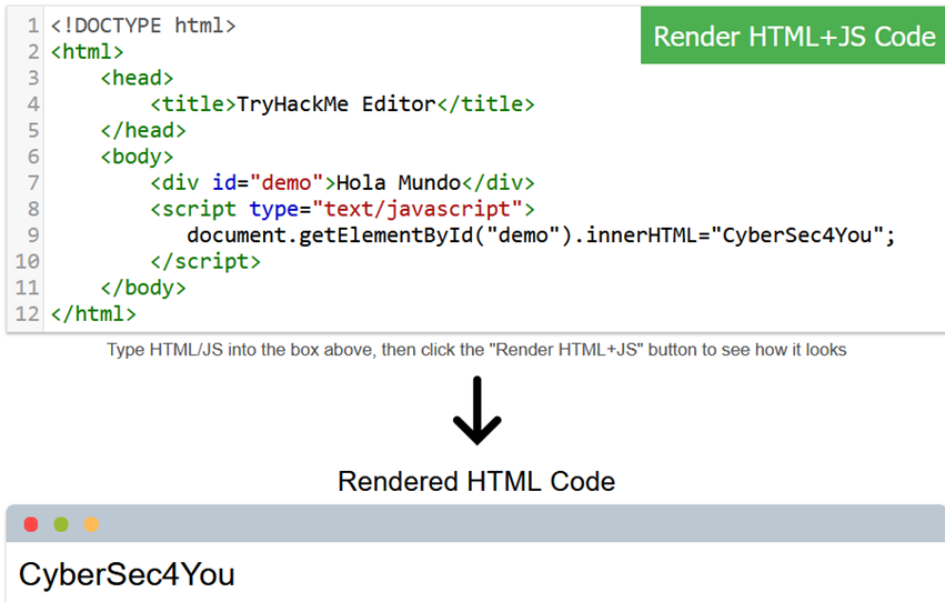 Este script encuentra un elemento en la página con el ID demo y cambia su contenido a un mensaje: